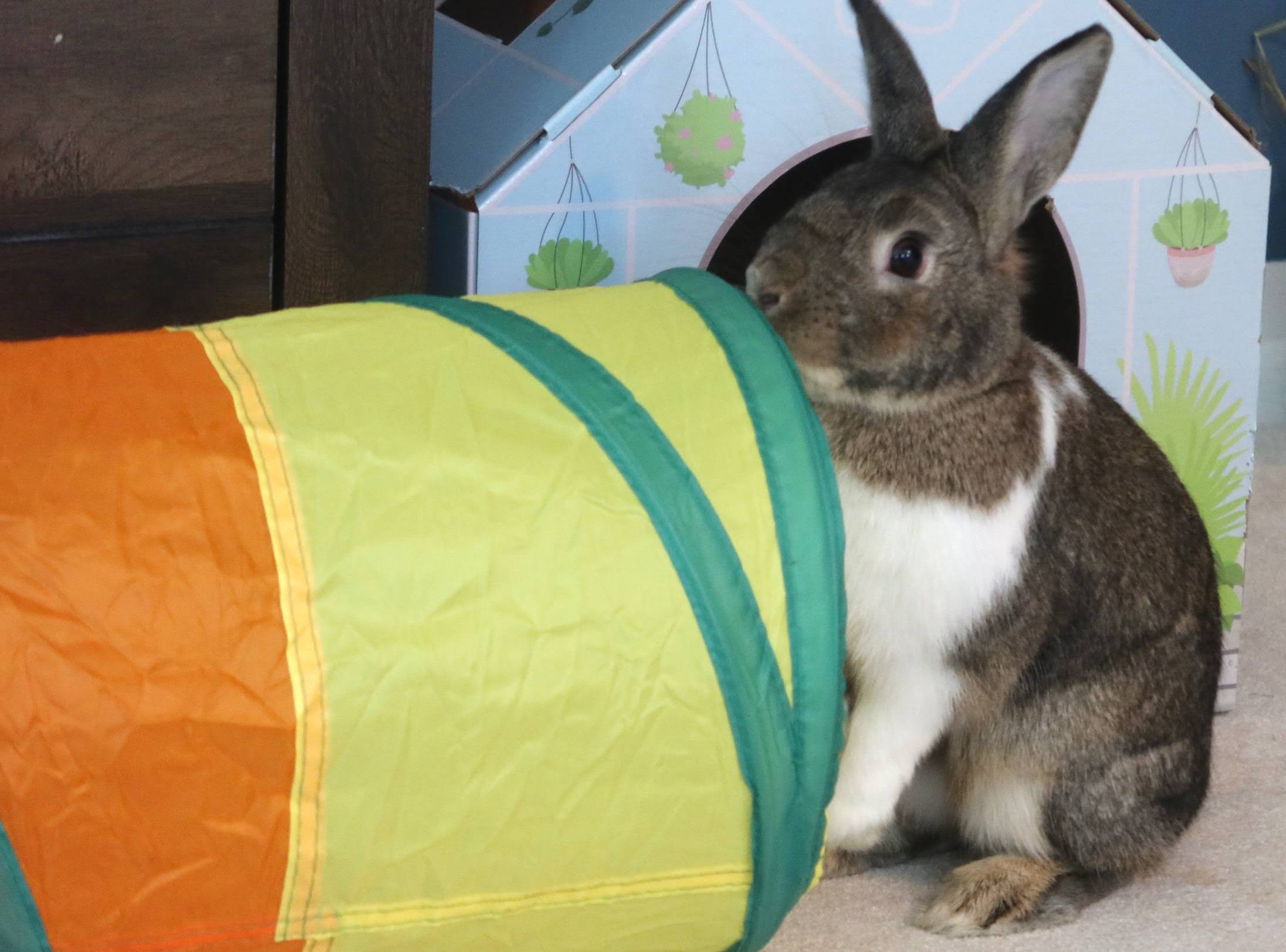 This bunny in HRS foster care needs a permanent home. All HRS rabbits are spayed/neutered, litterbox-trained, and socialized.